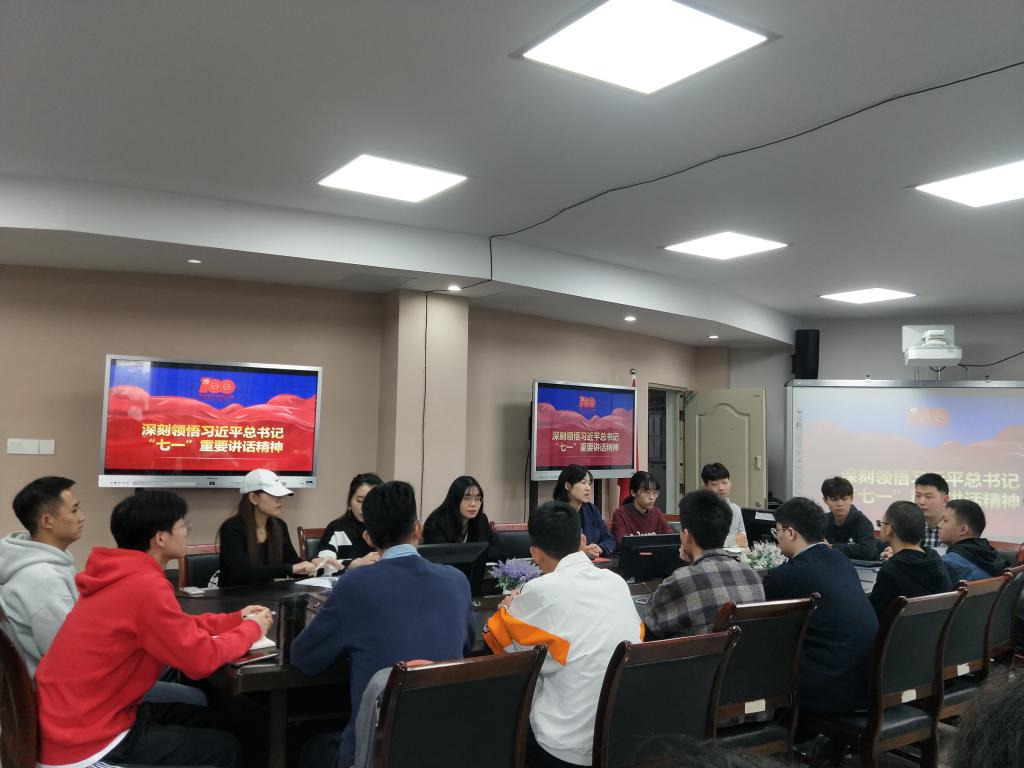 2021年10月19日,800cc全讯白菜网主站学生党员一支部在9教709会议室就深刻领会习近平总书记七一谈话重要精神进行了探讨。出席本次会议的有800cc全讯白菜网主站学生支部书记邢月军老师和一支部的全体党员同志。