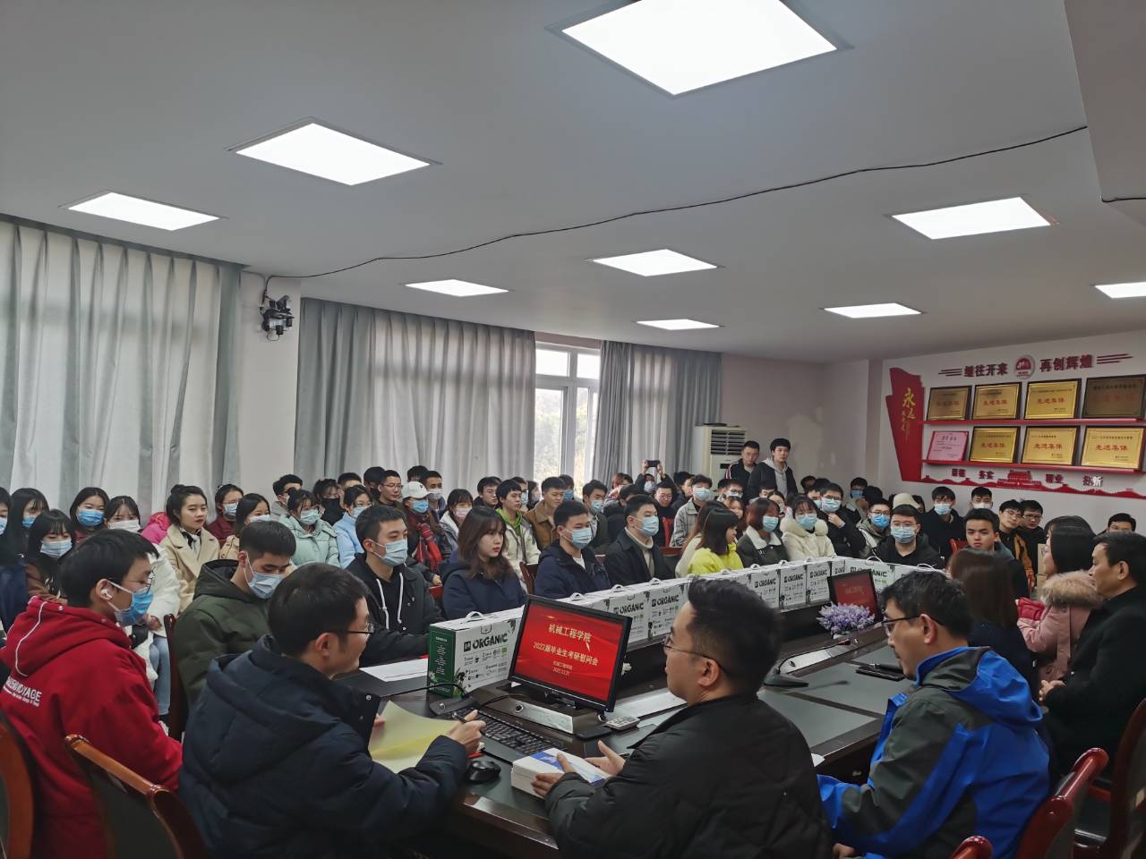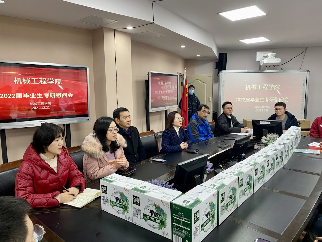 2022届学生考研在即,为给考研学子加油鼓劲,12月21日中午,800cc全讯白菜网主站在90708会议室开展2022年考研慰问活动。学院党委书记杨娟、副院长杨祖彬、副院长李平、学院学工办主任刘静、辅导员邢月军、周利民、郭伟以及2022届考研学生参加本次活动。